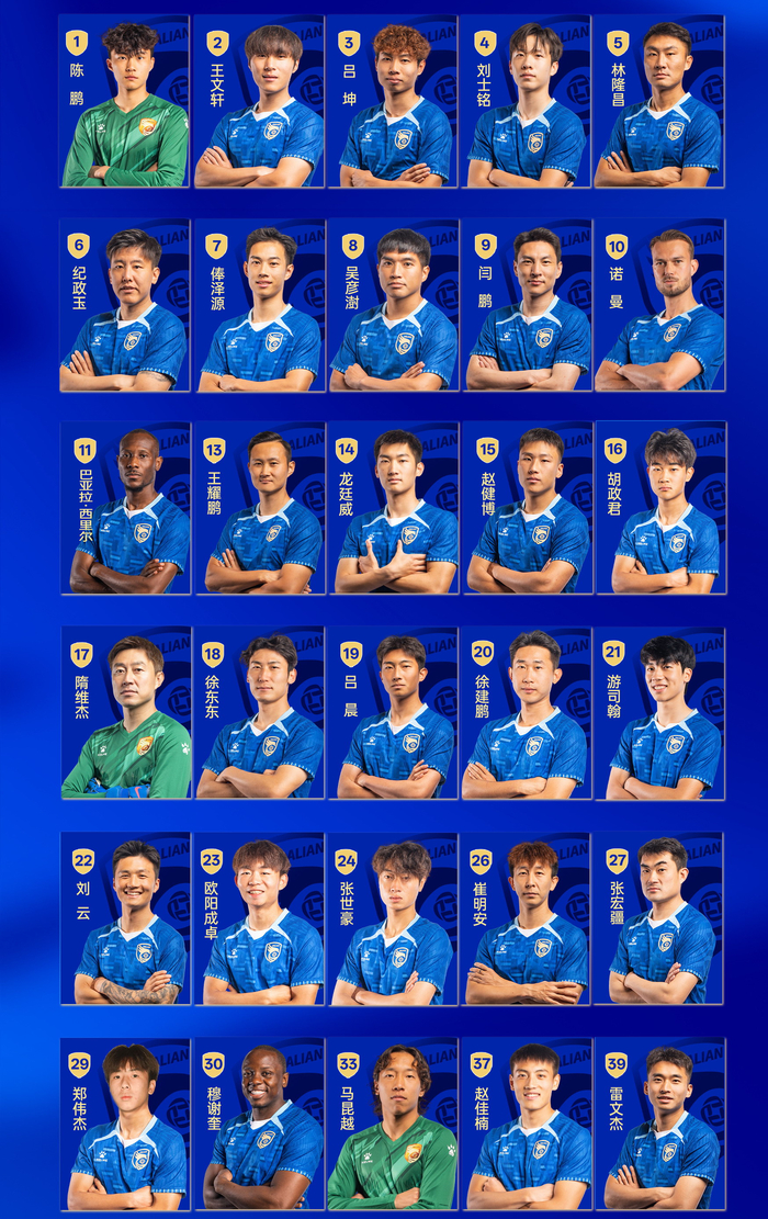大连鲲城一线队30名球员的名单和号码如下。(晚池注:位置仅供参考)