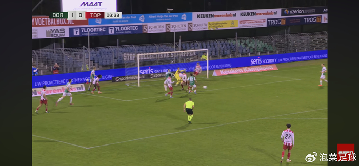 第5分钟,多德勒支边路传中,尹棹泳门前抽射被对手后卫挡出,恰好皮球落到了裴胜均的脚下,他没有停球直接轰门射向右上角,帮助球队取得了1-0的领先。这也是小裴代表球队本赛季打入的首粒进球。此后,多德勒支再次获得机会并完成破门。短短10分钟内,球队已经2-0领先。而尹棹泳也是一次次利用速度攻击对手。