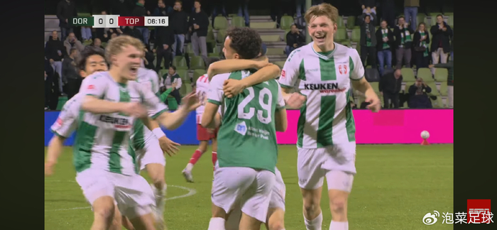 最后我们来看欧洲赛场韩国球员的表现情况。昨晚,2025-26赛季荷乙联赛第32轮展开争夺,多德勒支迎来了“副班长”奥斯TOP的挑战,本场比赛如果取胜,多德勒支就有望进入升级区。本场比赛,韩国双子星集体联袂首发,裴胜均踢中前卫,而尹棹泳则是踢到了中锋的位置上。本场比赛,球队取得梦幻开局。
