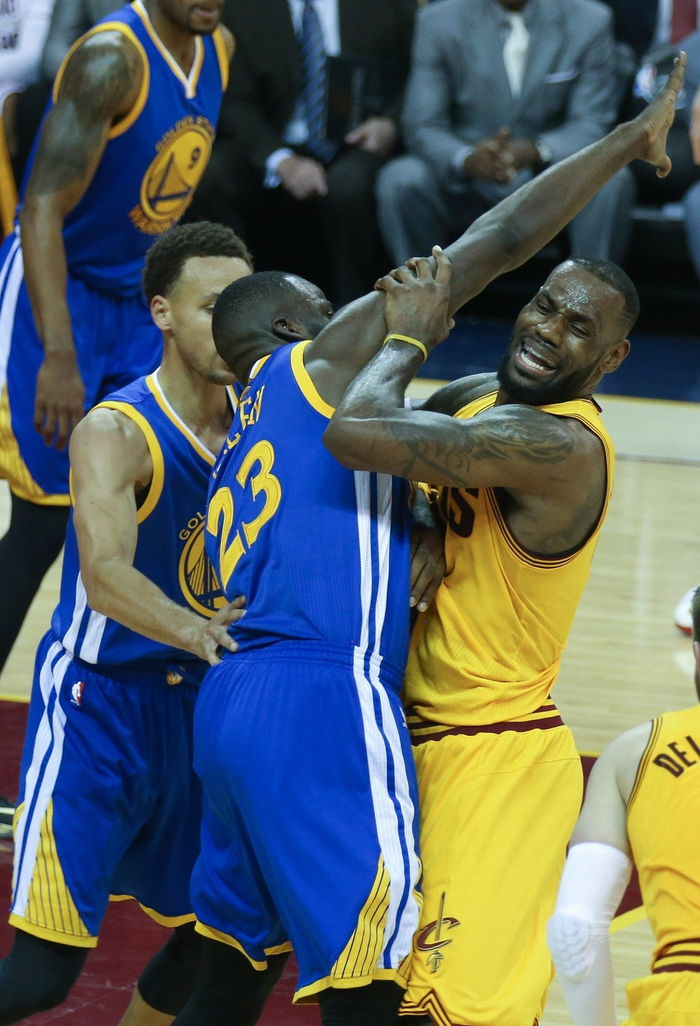 追梦在2016年G4中与詹姆斯发生冲突被判技术犯规,之后因为赛后追加恶犯,导致他季后赛恶意犯规积分累计达到禁赛标准,因此G5自动停赛一场。