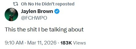 这是杰伦·布朗生涯第二次被驱逐出场,上一次是在2023年12月9日,凯尔特人主场133-122击败尼克斯的比赛中。