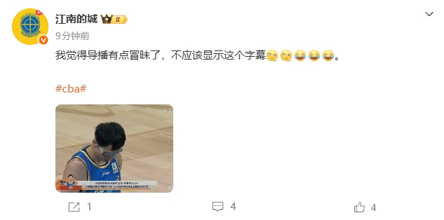 媒体人@江南的城表示:“我觉得导播有点冒昧了,不应该显示这个字幕。”